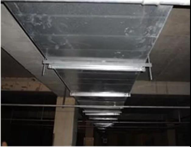 (1)、通風(fēng)管道安裝系統(tǒng)中主、干管長度超過20m,沒有設(shè)置防止擺動(dòng)的固定點(diǎn);