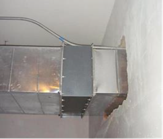 (1)、風(fēng)管穿墻處無穿墻套管;