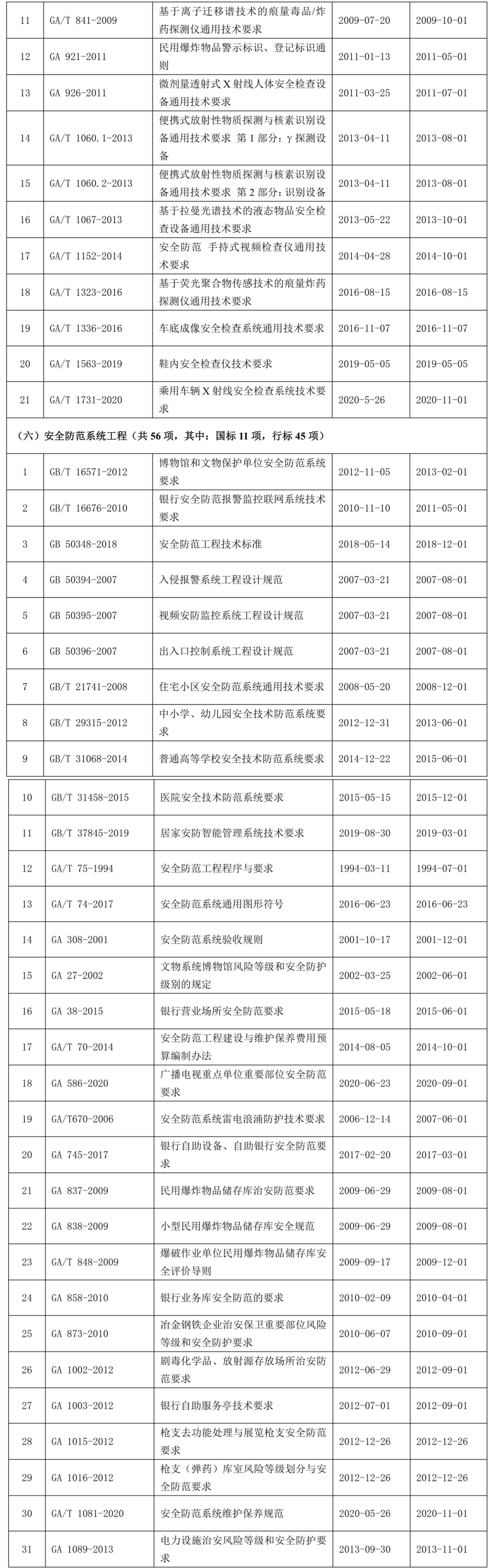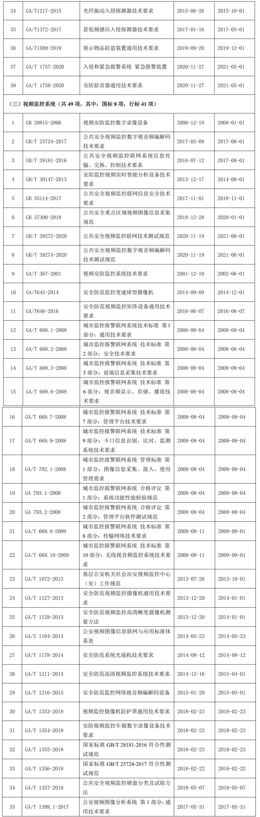 全國安全防范報(bào)警系統(tǒng)標(biāo)準(zhǔn)化技術(shù)委員會(huì)現(xiàn)行標(biāo)準(zhǔn)目錄