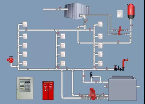 (3)臨時高壓消防給水系統(tǒng)。消防給水管網(wǎng)內(nèi)平時水壓不高,在水泵房(站)內(nèi)設(shè)有高壓消防水泵,發(fā)生火災(zāi)時啟動高壓消防水泵后使管網(wǎng)內(nèi)的壓力達(dá)到消防水壓的要求。