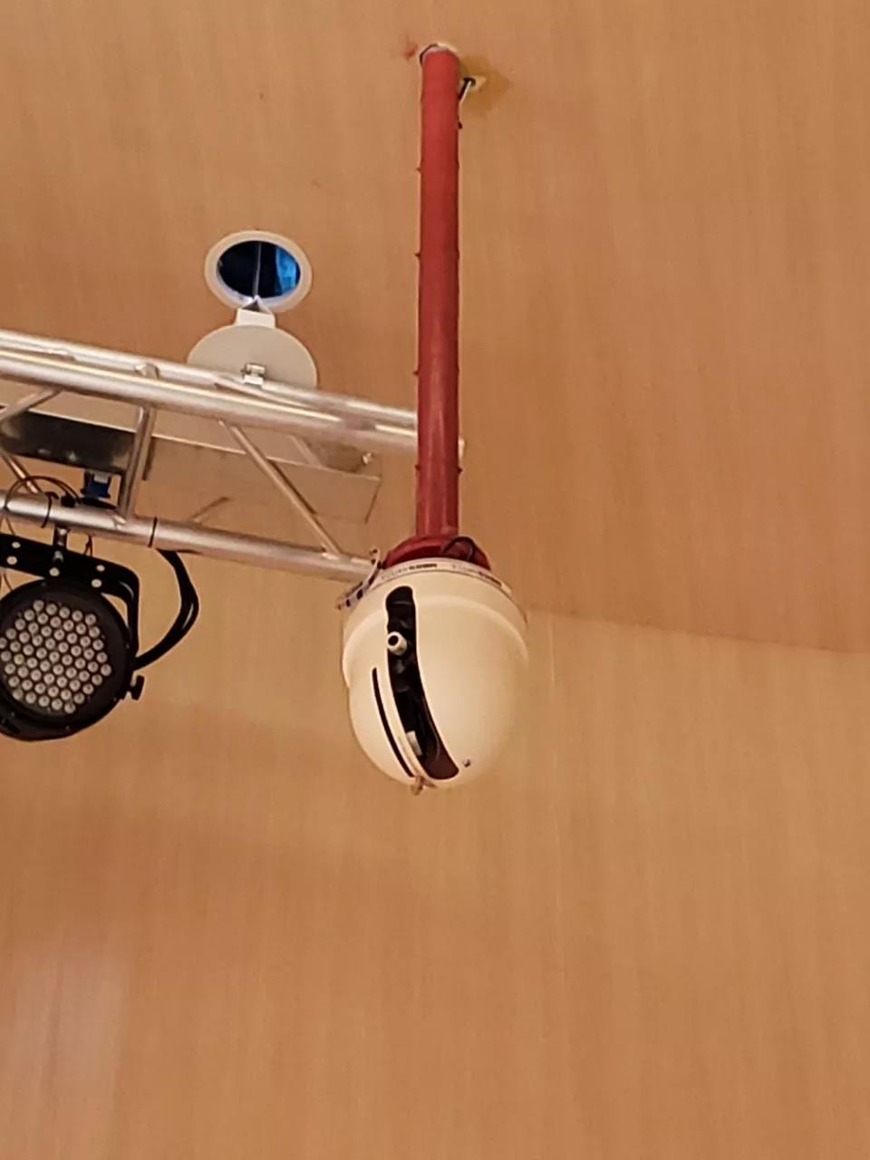 由于建筑消防技術規(guī)范的修訂升級,現(xiàn)在大劇院和音樂廳觀眾廳、舞臺、大堂這些凈空較高、不宜采用其它自動滅火設備的區(qū)域,必須安裝自動消防水炮。它長得如下圖所示。