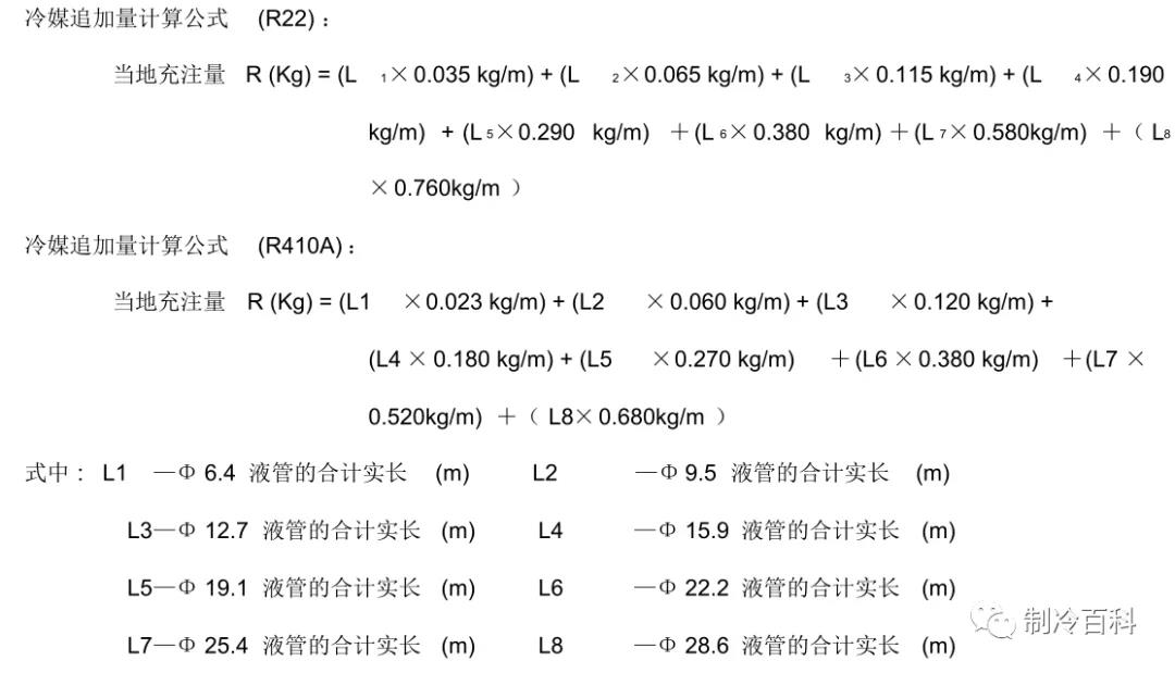 根據(jù)室內(nèi)、外機(jī)液管的連接長(zhǎng)度和管徑,計(jì)算冷媒的追加量。