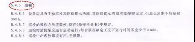 在各個部分標準的前言中,均對該國標的強制執(zhí)行與推薦執(zhí)行部分進行了劃分,在各個國標第5章內(nèi)容描述了對固定給水設備的控制要求,屬于強制執(zhí)行部分。其中均提到的對消防泵巡檢的要求。下面截取了標準中的描述: