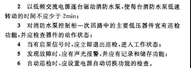 其實國家早在2002年就在《GA30.2-2002:固定消防給水設備的性能要求和試驗方法》中,規(guī)定了長期在非運行狀態(tài)下的消防泵應具有巡檢功能及試驗方法。并且給出了巡檢功能的具體要求,是消防巡檢產(chǎn)品的設計起點。見下圖