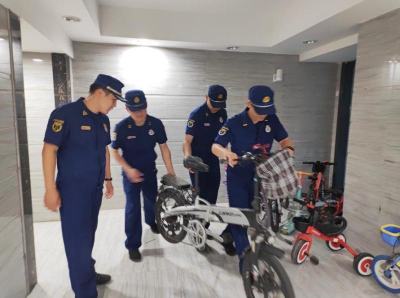“電動自行車一旦起火,燃燒速度非??欤欢ㄒ龊孟涝O備維護,確保充電車棚附近所有滅火設備能正常使用。”在經(jīng)濟開發(fā)區(qū)亦城茗苑小區(qū),檢查組提示物業(yè)人員,加強對充電樁線路老化、電動自行車缺電池等情況的巡查力度,嚴防居民私自攜帶電池進樓,將火災隱患掐滅在萌芽狀態(tài)。