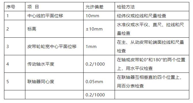 表6通風(fēng)機安裝的允許偏差和檢驗方法