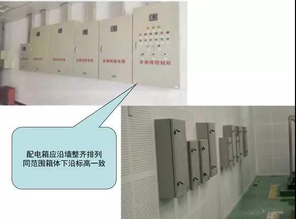 2)配電箱應沿墻整齊排列,同范圍箱體下沿標高一致。箱體高度600mm以內(nèi),底邊距地1.5m;箱體高度600~800mm,底邊距地1.2m;箱體高度800~1000mm,底邊距地1.0m;箱體高度1000~1200mm,底邊距地0.8m;箱體高度1200mm以上落地安裝;預空間滿足安全距離及檢修空間要求;