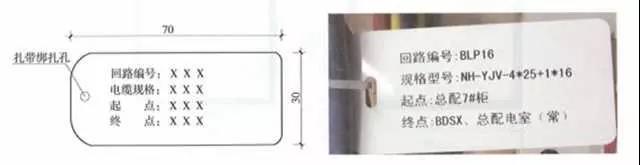 標識項目應直接打印在電纜標牌上,標題采用黑色黑體3號字,內(nèi)容采用4號字,成排掛牌方向應一致。