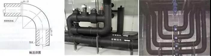 2、保溫管道穿墻處理:保溫管道穿墻、板時,保溫層應連續(xù)。應采用橡塑保溫管(板)進行穿墻、穿樓板保溫,用橡塑專用膠粘接牢固,接縫嚴密,兩端與墻面平齊,對接嚴密平整,兩側加牢固規(guī)整裝飾圈保護。保溫管(板)與墻、板面根部應粘貼裝飾圈,接縫應放在頂部或正視不明顯處,裝飾圈寬度20~50mm。