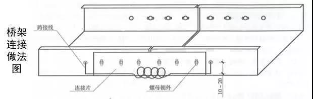 1、橋架直線段安裝連接:按圖測量、放線、定位;支架安裝時應掛線或彈線找直,用水平尺找平,以保證成排支架安裝后橫平豎直;橋架用連接片連接(或連接段連接),墊圈、彈簧墊、螺母緊固,螺母應位于橋架外側。除鍍鋅橋架外,相鄰段橋架之間應采用不小于4mm²軟銅線做接地跨接。在橋架外,沿橋架全長敷設不小于φ8的圓鋼或25x4的鍍鋅扁鋼接地母線,每個支架和接地母線可靠跨接,接地母線刷黃綠相間油漆。采用橋架連接段連接的優(yōu)點是橋架底部無縫隙,整齊美觀。