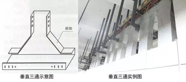 2、橋架三通安裝:根據(jù)電纜橋架走向,按照最大電纜直徑的10~15倍選擇三通形式和彎曲半徑。在距三通接口500mm處設置支架,橋架寬度大于800mm時,應在三通底部增加支架。兩段橋架與橋架、橋架與支架之間跨接接地。
