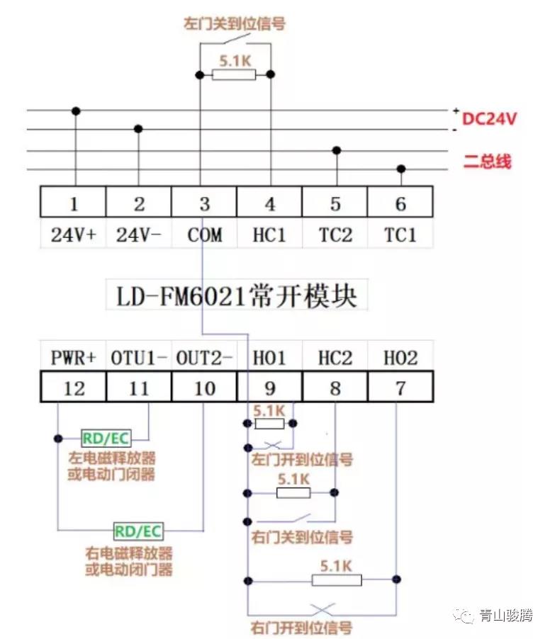 12、10端子接右電磁釋放器或電動(dòng)閉門器