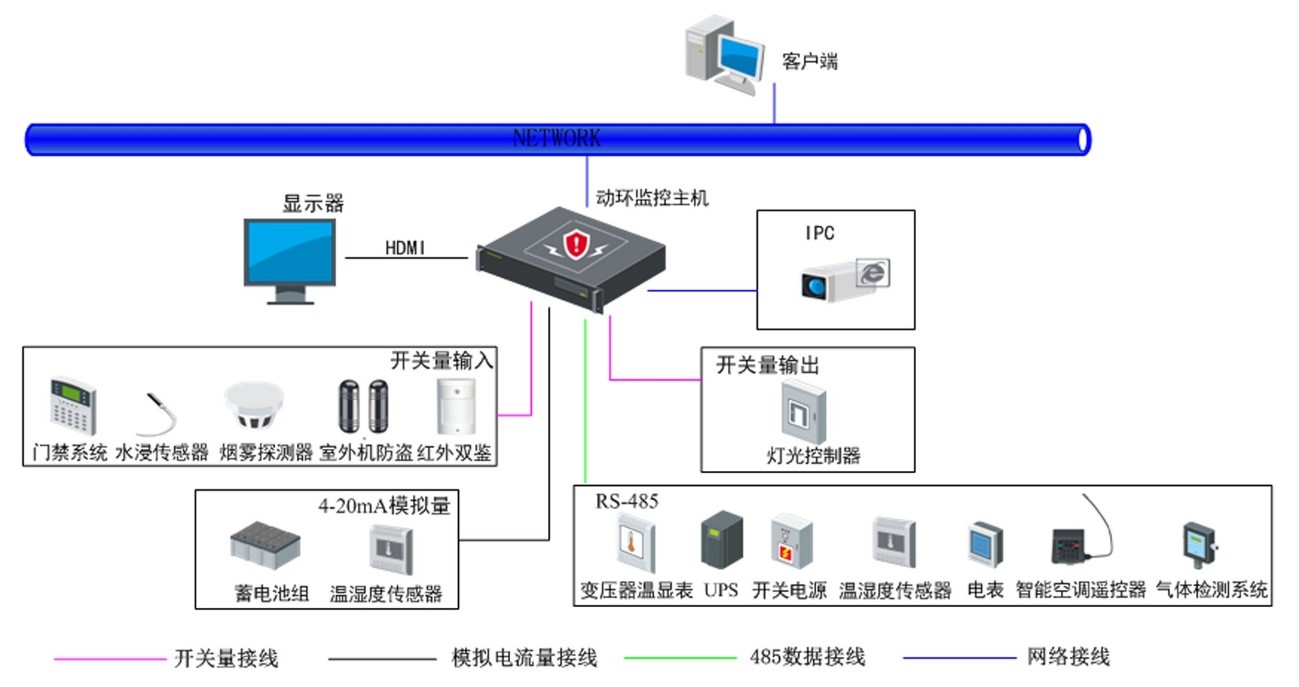 ●支持RS485接入外部設備,包括UPS,智能電表,開關電源,溫濕度傳感器,氣體檢測系統(tǒng),空調,變壓器溫顯表等。