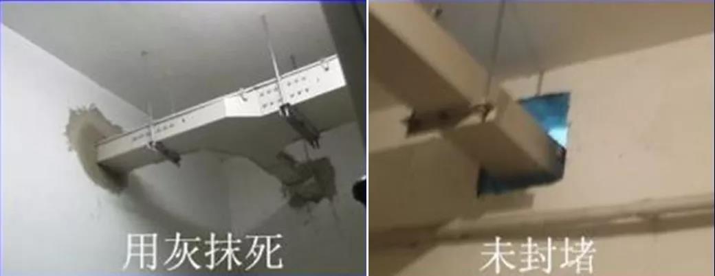 (1)、風(fēng)管穿墻處無穿墻套管;