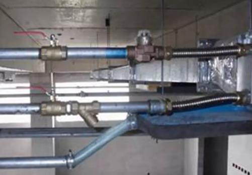 (1)、風(fēng)機(jī)盤管進(jìn)出水管處采用柔性連接方式,即在進(jìn)出水口處安裝金屬波紋管,降低風(fēng)機(jī)盤管在運(yùn)轉(zhuǎn)時(shí)的振動(dòng),也可緩沖因其振動(dòng)使管道接頭處或管道受力;