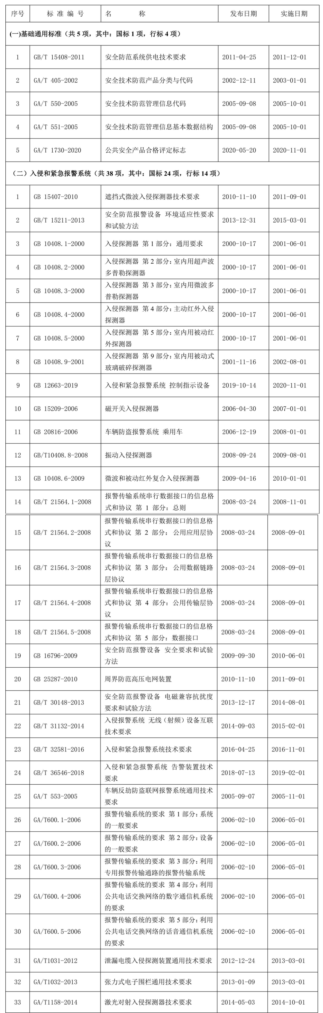 全國安全防范報(bào)警系統(tǒng)標(biāo)準(zhǔn)化技術(shù)委員會(huì)現(xiàn)行標(biāo)準(zhǔn)目錄