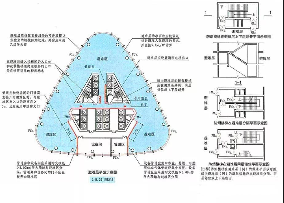 避難層是超高層建筑中用于消防避難的場所,一般用于人員暫時躲避火災(zāi)及其煙氣危害的樓層,同時也可以作為行動有障礙的人員暫時避難等待救援的場所。