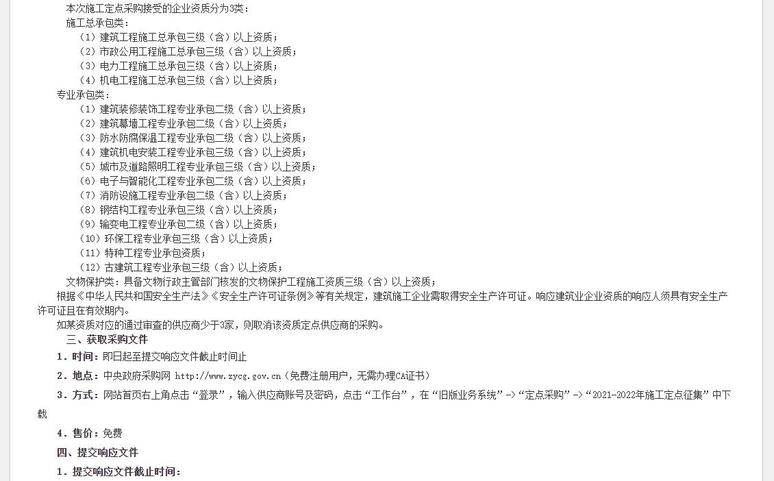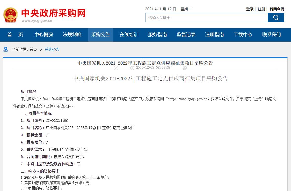 一、中央國家機(jī)關(guān)2021-2022年工程施工定點(diǎn)供應(yīng)商征集項(xiàng)目采購公告