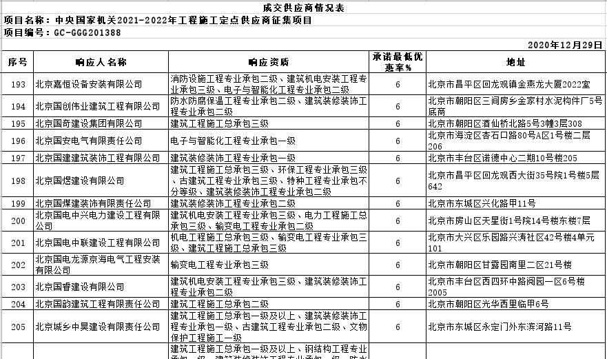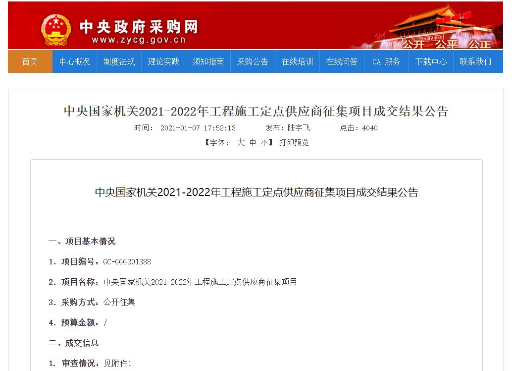二、中央國家機(jī)關(guān)2021-2022年工程施工定點(diǎn)供應(yīng)商征集項(xiàng)目成交結(jié)果公告