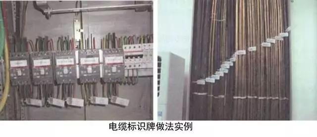 在電纜始端、末端、轉彎處、分支處應設置標識,電氣豎井橋架內(nèi)每層每根電纜均應標識,標識牌應采用定型加工的電纜標牌用尼龍扎帶綁扎在電纜上。