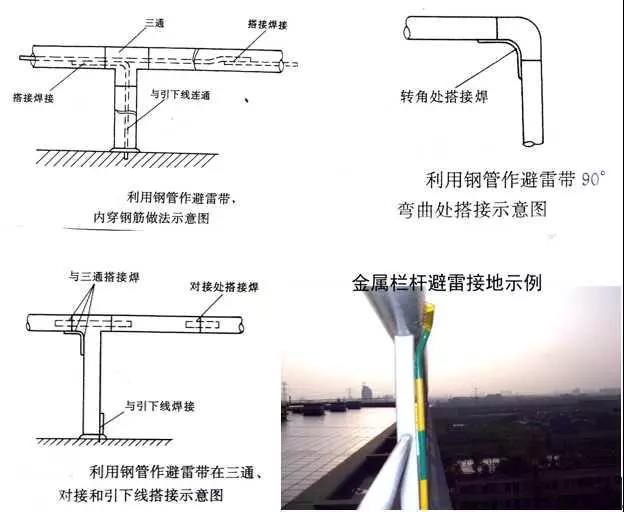 屋面利用金屬欄桿做避雷帶示例