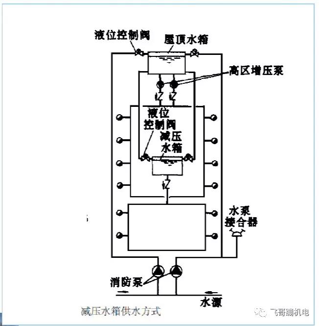 1.高層民用建筑、總建筑面積大于10000m²且層數(shù)超過(guò)2層的公共建筑和其他重要建筑,必須設(shè)置高位消防水箱;