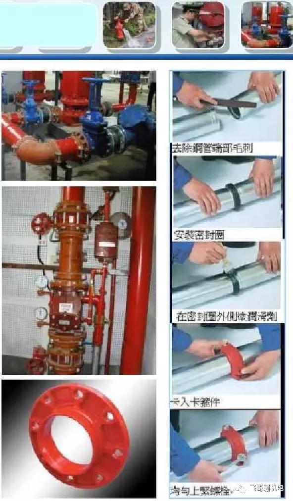 •架空管道的連接宜采用溝槽連接件(卡箍)、螺紋、法蘭、卡壓等方式,不宜采用焊接連接。