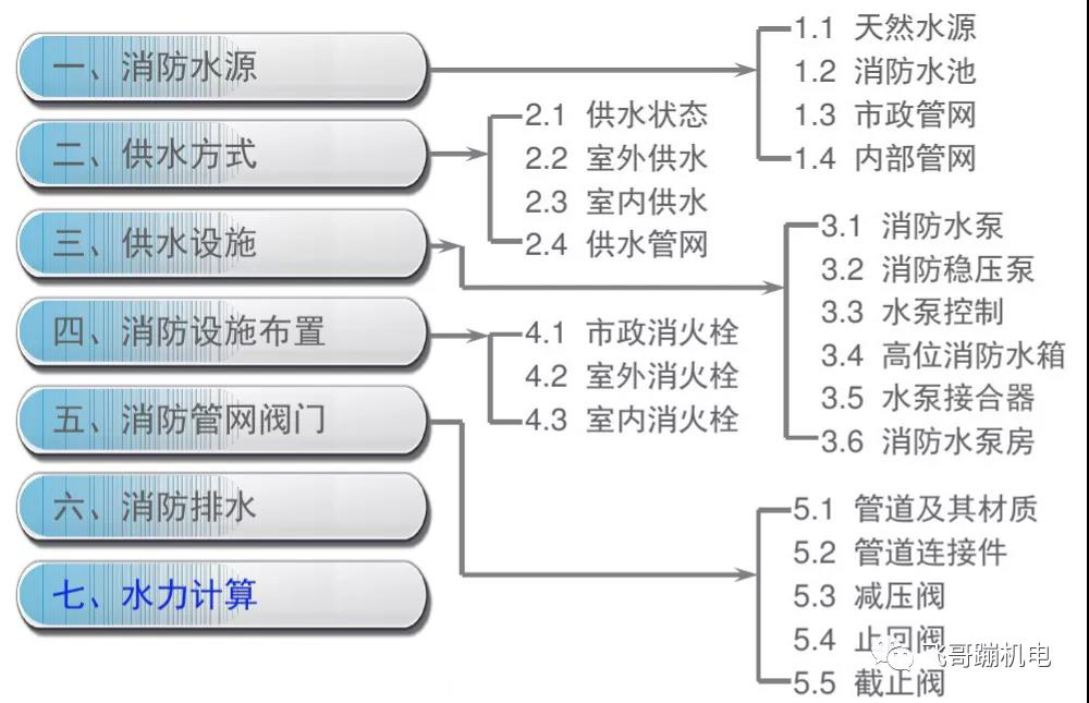 (1)水泵(穩(wěn)壓泵)∶23條;(2)泵房∶16條;(3)排水∶8條;(4)計(jì)算∶15條;(5)管網(wǎng)∶28條;(6)控制∶19條;