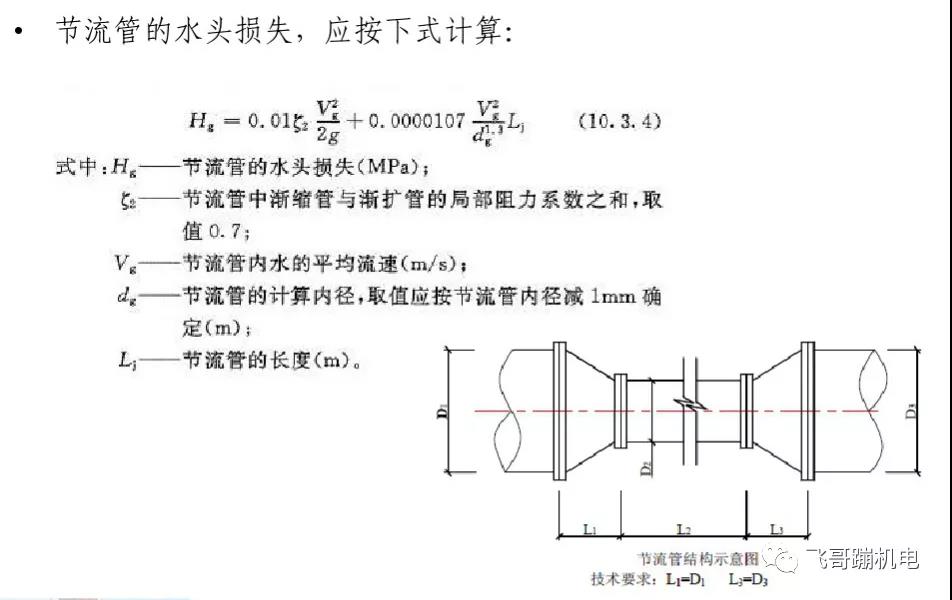 •消防水泵出水管應(yīng)進(jìn)行停泵水錘壓力計(jì)算,并宜按下列公式計(jì)算,當(dāng)計(jì)算所得的水錘壓力值超過(guò)管道試驗(yàn)壓力值時(shí),應(yīng)采取消除停泵水錘的技術(shù)措施。停泵水錘消除裝置應(yīng)裝設(shè)在消防水泵出水總管上,以及消防給水系統(tǒng)管網(wǎng)其他適當(dāng)?shù)奈恢茫?nbsp;
